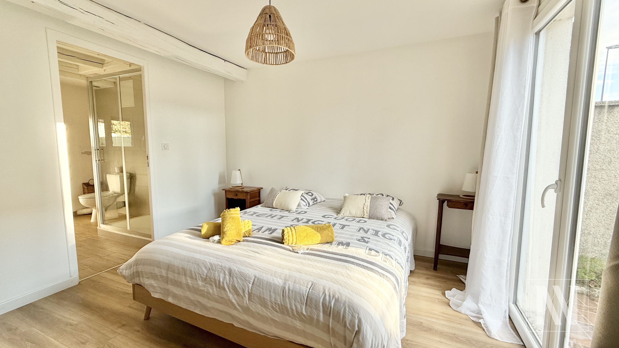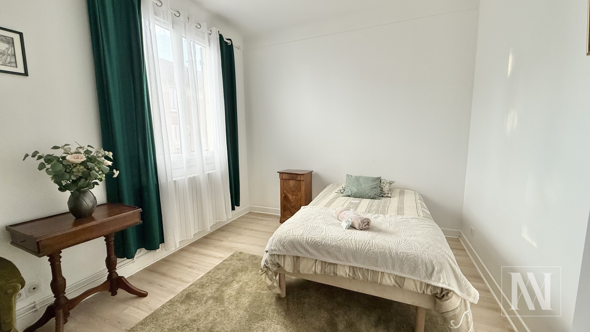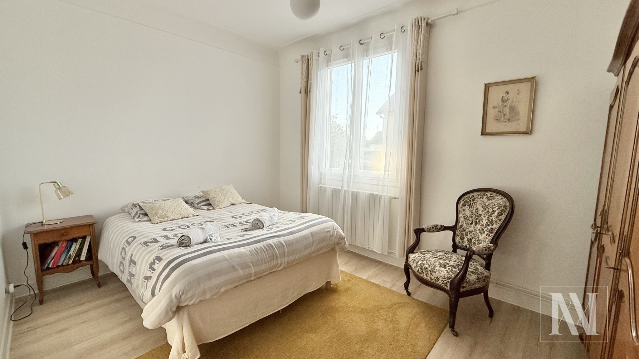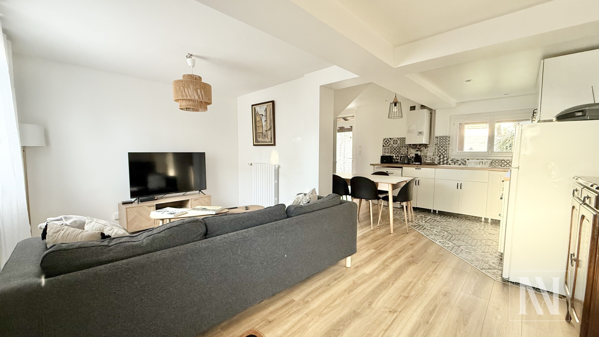 Jolie maison entièrement renovée et meublée de 82m2 située dans un quartier calme et familiale. Elle vous offre au rez de chaussé, un séjour, une cuisine ouverte équipée et aménagée ainsi qu'une suite parentale. A l'étage, le palier dessert deux spacieux chambres et une salle de bains avec wc. A l'extérieur vous aurez la chance de pouvoir profiter d'un jardin de 350m2 ainsi qu'une petite dépendance. Disponible à partir du 5 Janvier Loyer : 990€/mois (charges comprises) Dépôt de garantie : 1500€ Honoraires locataire : 656€ dont 246€ pour l’état des lieux